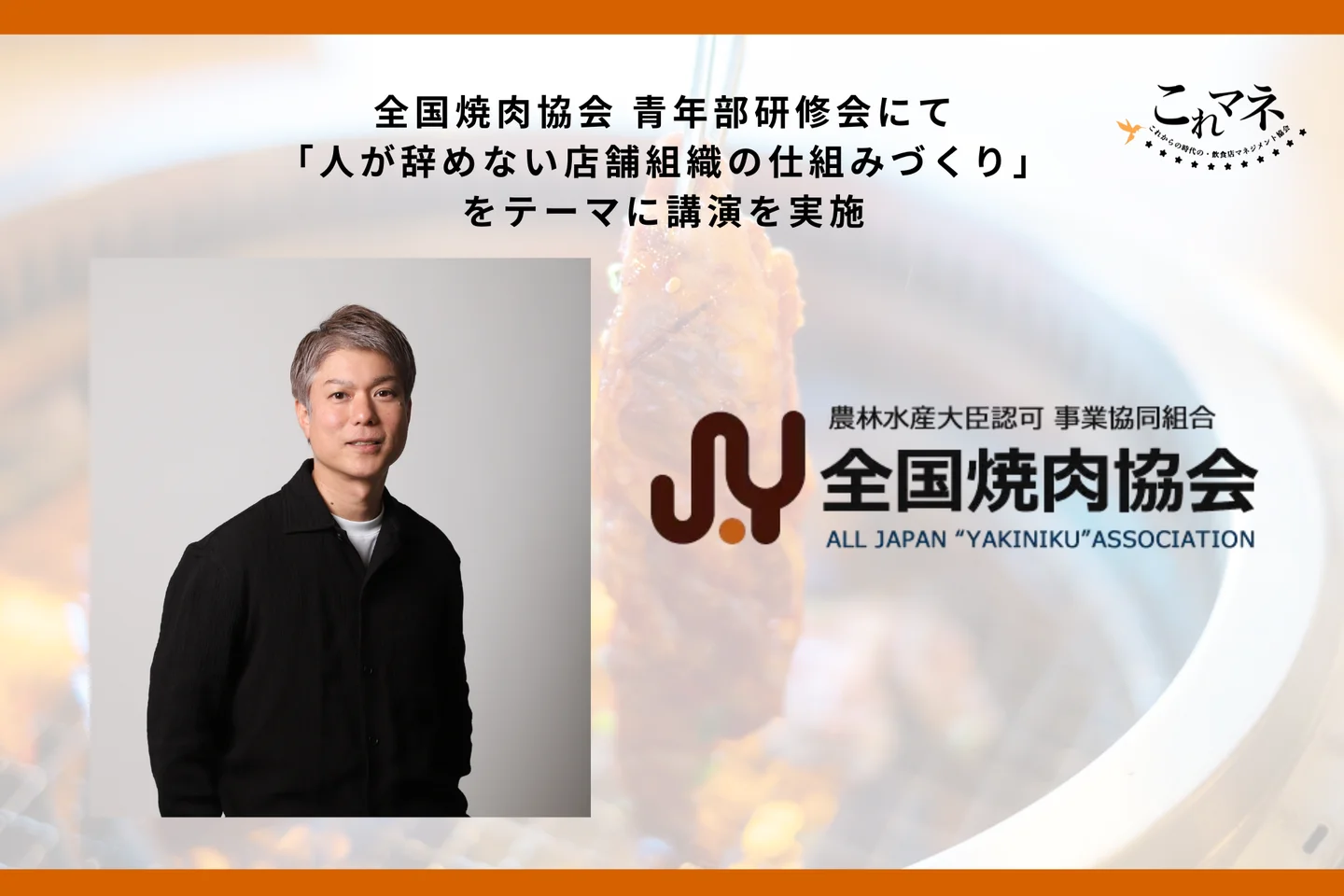 株式会社これマネCEOプロデューサー山川博史は、全国焼肉協会 青年部主催の研修会において、店舗ビジネスにおける組織づくりと人材育成をテーマにした講演を実施いたしました。